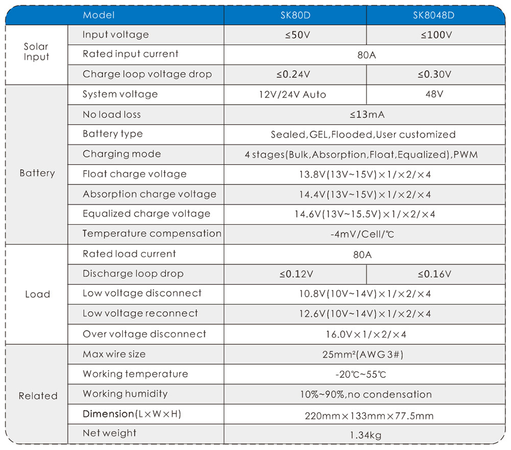 SK series is a new series of intelligent multi-purpose solar charge controllers. Its innovative design makes it easy to install and quite user-friendly. Optimized charging and discharging management extends the service life of batteries considerably.